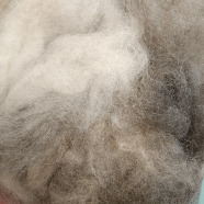 Es handelt sich hier um die Wolle von Schwarzkopf- und Merionoschafen. Es ist die weichste Schafwolle, die ich hier aus der Umgebung bekommen kann.